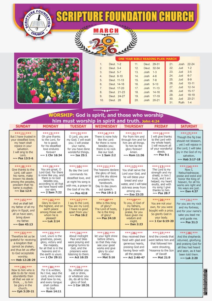 Scripture Foundation Ministry as her headquarters currently at Plot 925A, Chikakore Layout Hill Side, Across the Rail Line, Kubwa, Abuja, Nigeria, with fast growing branches within Nigeria.